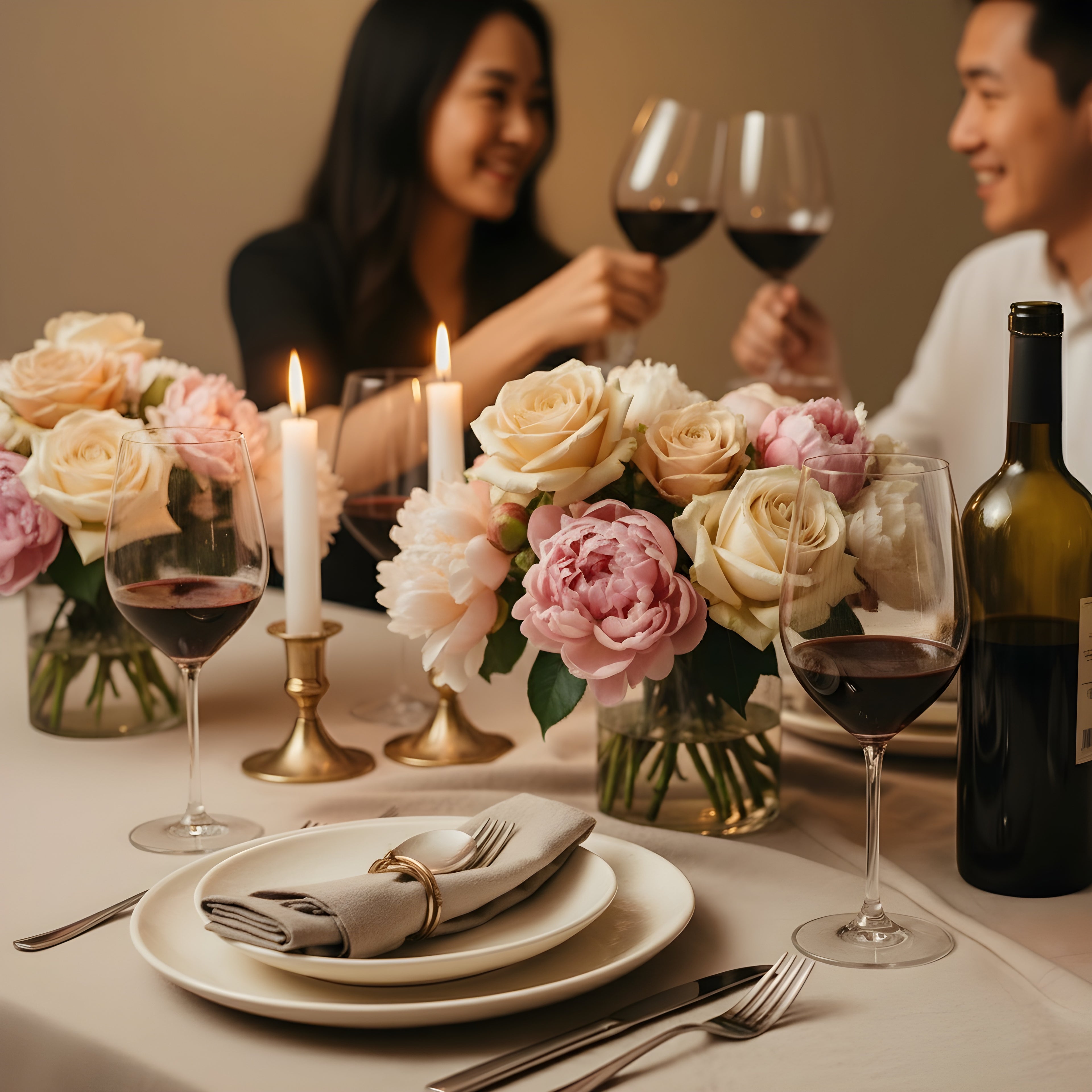 Under the soft of candlelight and the fresh flowers, each swirling drop of red wine symbolizes a romantic bond. Savor an intimate dinner, and write your own beautiful love story!
