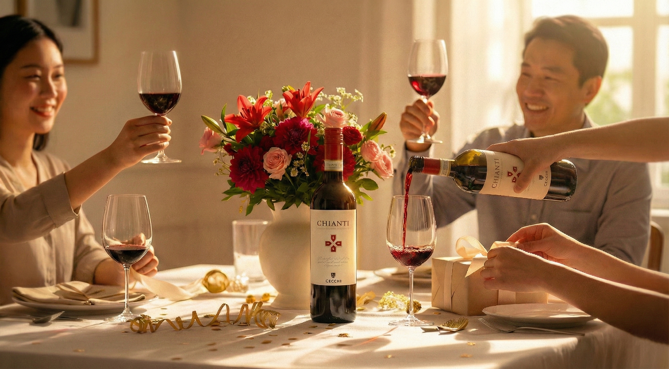 Raise a toast with friends and loved ones, surrounded by exquisite wines and vibrant bouquets. Let the rich flavors and vivid colors enhance your most memorable moments!